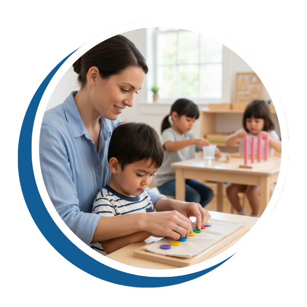 Montessori methods are guided by the principle of “sensitive periods” when the child is developmentally ready to learn. Montessori programs take into account the fact that every child develops at his or her own rate. New tasks are introduced at the right moment of “readiness”; only then will the information have true value. The teachers create this motivating, age-appropriate environment through ongoing evaluation of each student’s current stage of development. Frustration is thus kept to a minimum and learning flourishes.